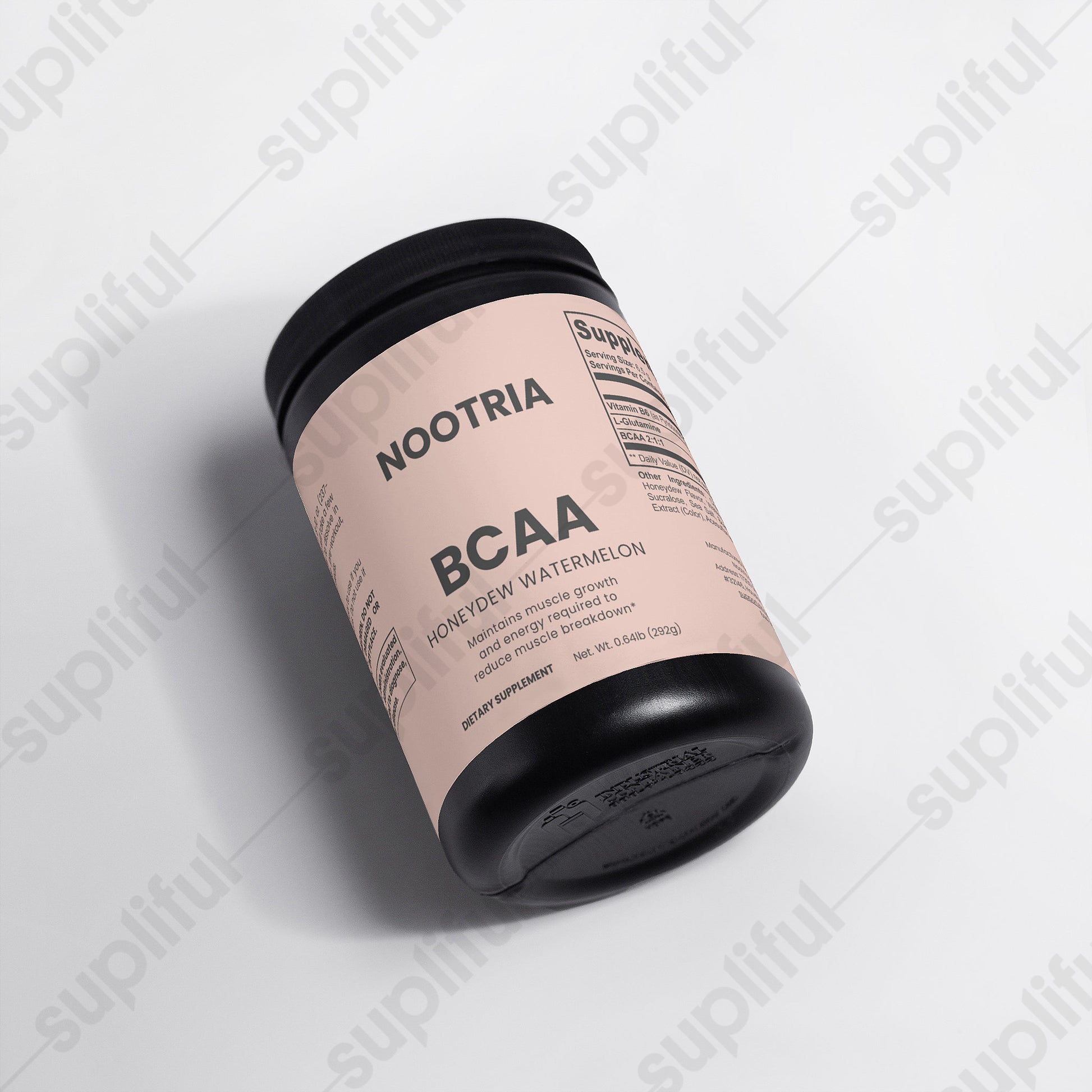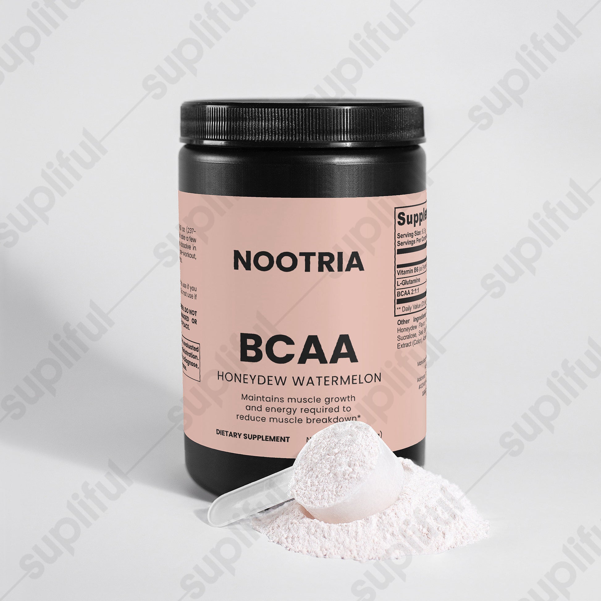 Ingredients: Vitamin B6 (as Pyridoxine Hydrochloride), L-Glutamine, BCAA 2:1:1, Citric Acid, Honeydew Flavor, Watermelon Flavor, Potassium Citrate, Silicon Dioxide, Sucralose, Sea Salt, Beet Powder (Color), Grape Skin Extract (Color), Acesulfame Potassium.